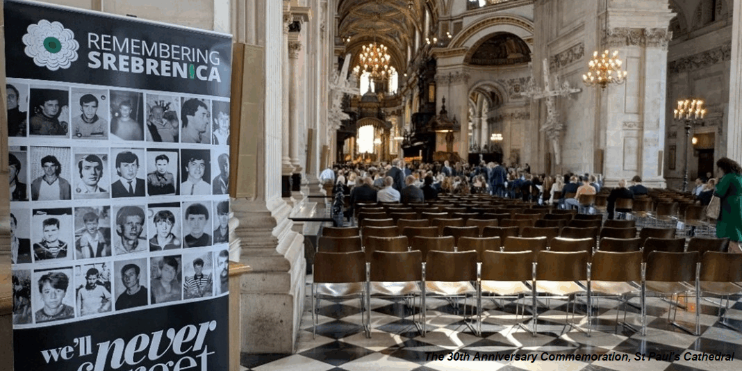 The national commemorations, organised by Remembering Srebrenica UK, ensure that the Bosnian genocide is never forgotten. In the nave of St Paul’s, a poster displayed the photographs of Srebrenica victims, illustrating this.